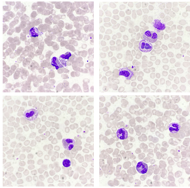 入院檢查雙耳前、耳后、頸前、頸后、腹股溝皆可扣及淋巴結腫大,質軟,界清,易推動,部分融合。當遇到這樣一份血液細胞形態(tài)(骨髓+外周血)送檢單時,筆者首先想到的是—淋巴瘤。在鏡檢時,淋巴細胞易見,未見典型的淋巴瘤細胞,取而代之的是較多的嗜酸性粒細胞,見圖1~2: